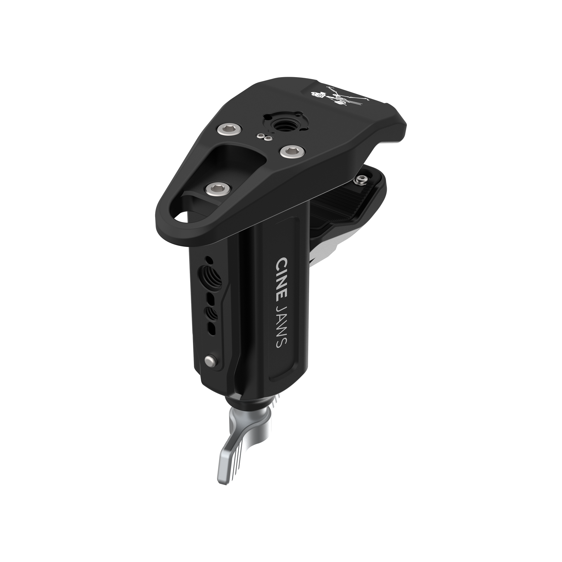 We’ve all been on set and needed an extra ¼”-20 or ⅜”-16. CineJaws has you covered with onboard bolt storage—no more digging through your kit mid-shoot. Lastly, on set safety is always paramount. The large loop on the back of the top jaw is perfect for connecting a safety cable to secure expensive gear in dynamic setups.
